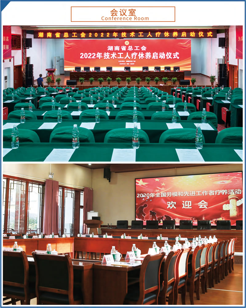這里設(shè)施完備,環(huán)境優(yōu)美。占地70余畝,建筑面積23000余平方米,由多座湘西民族風(fēng)格的園林建筑群組成。院外依山傍水,院內(nèi)綠樹成蔭,環(huán)境優(yōu)美怡人。現(xiàn)有客房4棟,各類客房279間,中西餐廳可滿足500人同時(shí)就餐。大小多功能會(huì)議室、棋牌室、健身房、藍(lán)球場、羽毛球場等設(shè)施均有配備。