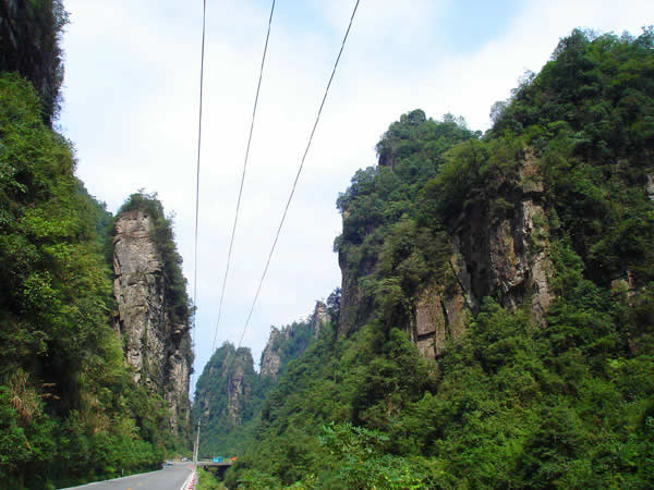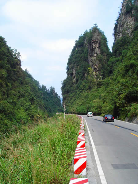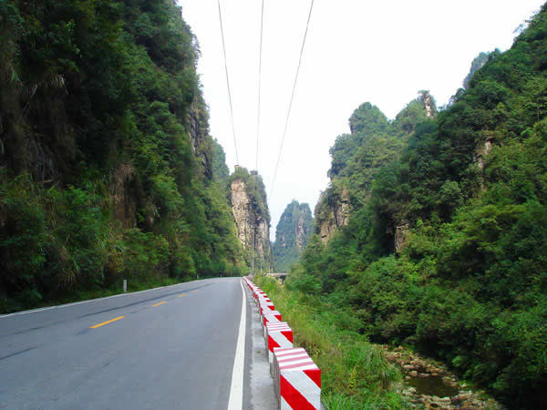 百丈峽圖片 百丈峽是武陵源風(fēng)景名勝區(qū)通往張家界市的公路貫通整個(gè)峽谷,因有堵高近百丈的石壁,直插云霄,不敢仰視,故而得名。據(jù)《慈利縣志》載,索溪峪右得百丈峽,峽長三十公里……又相傳向王天子起義軍與官兵在此先后博殺一百仗,依此又名百仗峽。明代九永兵備胡桂芳,一生好游歷山川,來到百丈峽后題寫了一首七言詩:“峽高百丈洞云深,要識(shí)桃源此處尋;戎旅徐行風(fēng)雪緊,誰將興盡類山蔭。”刻于峽內(nèi)道旁石壁上。