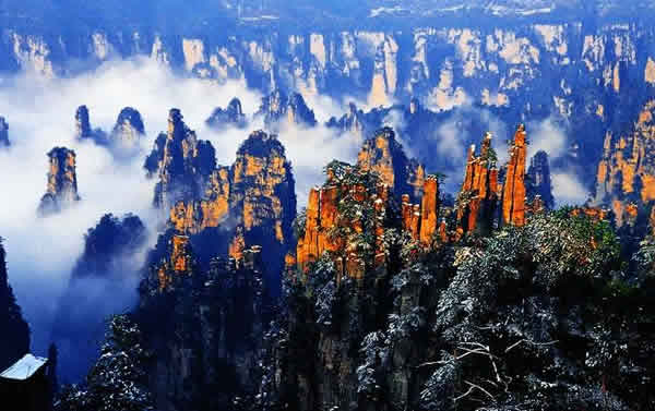 御筆峰 御筆峰被公認(rèn)為是武陵源砂巖大峰林風(fēng)光的標(biāo)志景點(diǎn),不斷出現(xiàn)在海內(nèi)外各種媒體和宣傳品上面,堪稱天下一絕。本來,這是大自然鬼斧神工的神來之筆,科學(xué)上講是歲月風(fēng)化、浸蝕、切[1]削的結(jié)果,但民間卻把它與向王天子聯(lián)系在一起,說是向王天子殉難后,他的御筆化成石峰,廝守在神堂灣邊;而裝御筆的“簽筒”、“筆架”則留在水繞四門。然而,千古興亡,時(shí)代更迭,“古今多少事,都付笑淡中”。只有這支“御筆”還在!在詩人眼中,好用它來寫瀟瀟灑灑的霧,寫多姿多彩的云,寫火一般熱烈的朝霞,寫夢幻般純潔的月光,寫“高處不勝寒”的冰雪世界。當(dāng)然,也可以寫您熱戀這方山水或者熱戀某位紅顏知己的情詩。