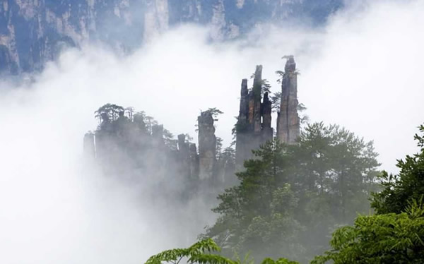 | 御筆峰坐落于天子山自然保護(hù)區(qū),是天子山風(fēng)景區(qū)的最佳景點(diǎn)之一, 峰高100余米,數(shù)峰參差并列,據(jù)說是向王天子兵敗時(shí)丟棄的御筆所化成的山峰。歸類于石家檐游覽線。山谷中數(shù)十座錯(cuò)落有致的秀峰突起,遙沖藍(lán)天,靠右的石峰像倒插的御筆, 靠左的石峰似擱筆的“江山”。此景變化萬千,日照霞染生輝,云霧涌動(dòng)時(shí)隱時(shí)現(xiàn),春月透過花叢,五層峰巒相迭。