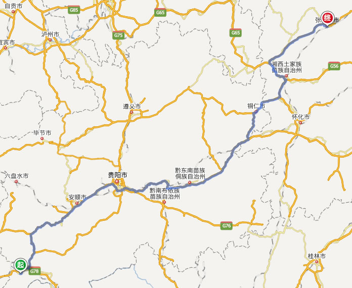 興義去張家界自駕車自助游線路圖全程高速):