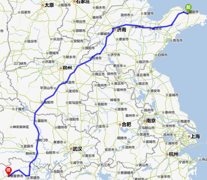 煙臺(tái)去張家界自駕車(chē)自助游線路圖全程高速):