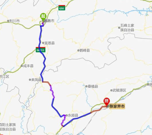 恩施去張家界自駕車自助游線路圖全程高速):