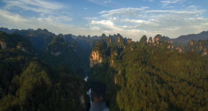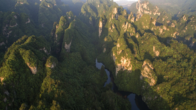 現(xiàn)在位置:張家界旅行社->旅游資訊 -> 航拍晨曦中的武陵源百丈峽 宛如人間仙境