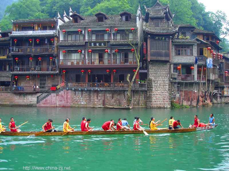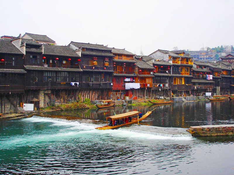 【鳳凰古城位于沱江之畔、群山環(huán)抱、關(guān)隘雄奇、碧綠的沱江依著城墻緩緩流淌,疊翠的南華山麓倒映江中,江中漁舟游船數(shù)點,山間暮鼓晨鐘兼鳴,懸崖上的吊腳樓輕煙裊裊,碼頭邊的浣紗姑笑聲朗朗,兩岸已有數(shù)百年歷史的吊腳樓更是別有一番風(fēng)味;順?biāo)麓┻^虹橋一幅江南水鄉(xiāng)的畫面便展現(xiàn)于眼前--萬壽宮、萬名塔、奪翠樓……一種遠離塵世的感覺悠然而生;鳳凰--猶如“一幅濃墨淺彩的中國山水畫”】(游覽時間約3小時左右)